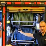 Vi fick ta del av mycket information under de 2.5 timmar som besöket varade. Intressant att se all utrustning som en släckbil har, motorsågar, klippverktyg, slangar av olika typ, 3 kubik vatten m.m. Vi fick också se det nya redskapet – en ”vattenlans” som kan skära hål i betong. I stället för att öppna en dörr och tillföra syre så sprutas en vattendimma in genom hålet.