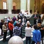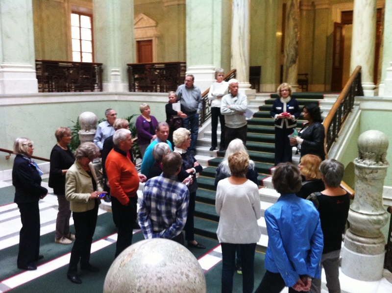 Den guidade vandringen i Gamla sta’n gav en intressant inblick i miljöer som få av oss sett tidigare och avslutades med en välsmakande lunch i Nobelmuseet (lite trångt i lokalen beroende på instundande tillkännagivande av Nobelpriset i litteratur). Därefter vandrade vi vidare till Riksdagshuset där vi möttes av den västmanländska riksdagsledamoten Åsa Coenraads, som guidade oss runt i både nya och gamla byggnaden. Eftersom ledamöterna hade ”frivecka” fick vi insyn i lokaler där allmänheten normalt inte har tillträde, å andra sidan ”slapp vi” (som Åsa uttryckte det) bevittna någon pågående debatt i kammaren!