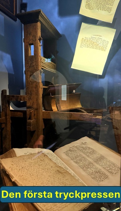 Fascinerande berättelser om vardagslivet med föremål från över tusen år – slitna skor, smycken, redskap- det gick verkligen att leva sig in i livet från förr. Vi såg den första tryckpressen, det tog för två män tre dagar att trycka en sida med text. 1759 skrev Peter Forsgård ett bokmanus som handlade bla om skolgång för barn och yttrandefrihet, men boken förbjöds för den ansågs som allt för farlig. Det var en helt fantastisk och givande utställning som avslutades med kaffe, en god kaka och samtal om intrycket av ”Nordbor”.