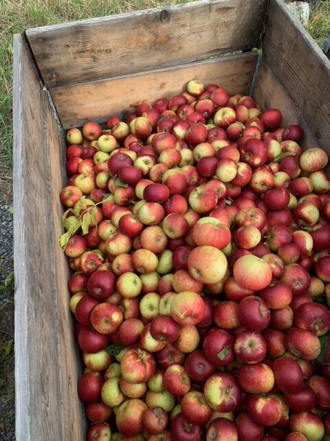 På Bergsmansgården väntade Lotta Örtendal på oss. Hon berättade och visade oss runt i Bergsmansgården. På 1600-talet började man anlägga en trädgård vilande på barockens former. Barockträdgården uppstår under 1990-talet och i trädgården odlas nu köksväxter, kryddväxter, blommor och humle. Lotta berättade också om äppelträds-odlingen, man ville bevara unika sorter och här finns nu några av landets äldsta kvarvarande äppelträd, tex Hedemoraäpple, Fullerö och Gubbäpple.