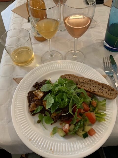 Lunchen som bestod av visenterpaj och sallad åt vi i en av de vackra, gamla byggnaderna som tillhörde anläggningen. Tror ingen av oss tidigare hade smakat visentkött.
