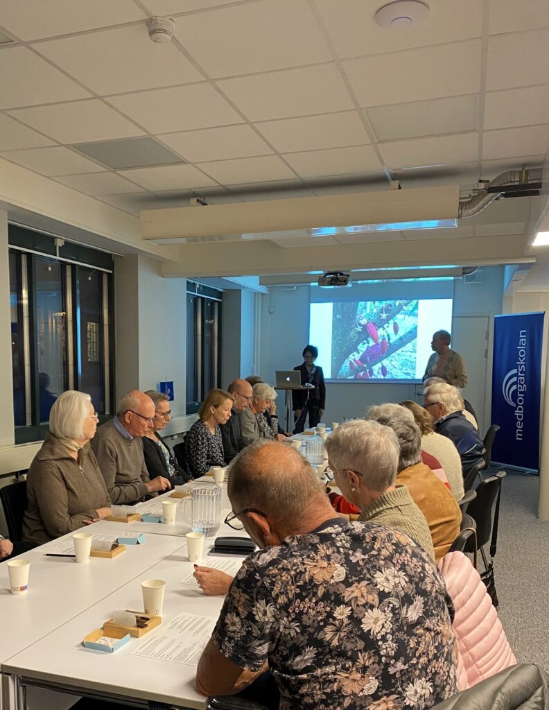 Den 13 november samlandes ett fyrtiotal seniorer för att lära mera om gintillverkning och få möjlighet att provsmaka Västerås Destilleris olika ginsorter. Destilleriet startade 2021 av Salar Azizi och Emmelie Fallberg, båda med erfarenhet från restaurangbranschen, Salar som bartender och Emmelie som kock. Pandemin och de begränsade arbetstillfällen som fanns under denna period, gjorde att Salar och Emmelie började fundera på att starta eget. Med deras bakgrund och kompetens, samt att Västerås saknade ett destilleri, satsade de på gintillverkning. Destilleriet håller till i Slaktområdet och de tar emot intresserade för provningar och destillerivisningar.