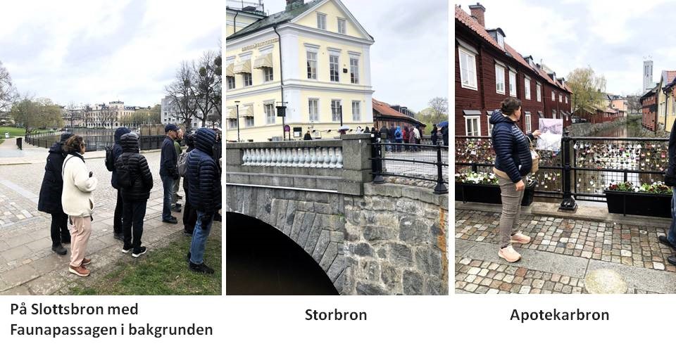 Vi fick först en kunnig genomgång av hur Västerås, tidigare Westra Aros byggts upp kring Svartåns mynning, Aros betyder åmynning. Nina berättade sedan historian om många av de byggnader som vi passerade när vi gick på ömse sidor om ån, samt om de totalt 11 broar som vi korsade över eller under, vilka alla också har sin historia. De heter i ordning från Mälaren och norrut: Strandbron, Järnvägsbron, Våghusbron, Slottsbron (Turbinbron), Storbron, Apotekarbron, Prästbron, Biskopsbron, Djäknebron, Skarpskyttebron och Skerikesbron.