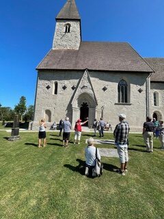 Vi blev guidade av Lars-Håkan Engman som berättade att kyrkogården var från 1924 och det låg en gård som hette Hovdesta här. Den första gravsättningen 1924 var en pojke.