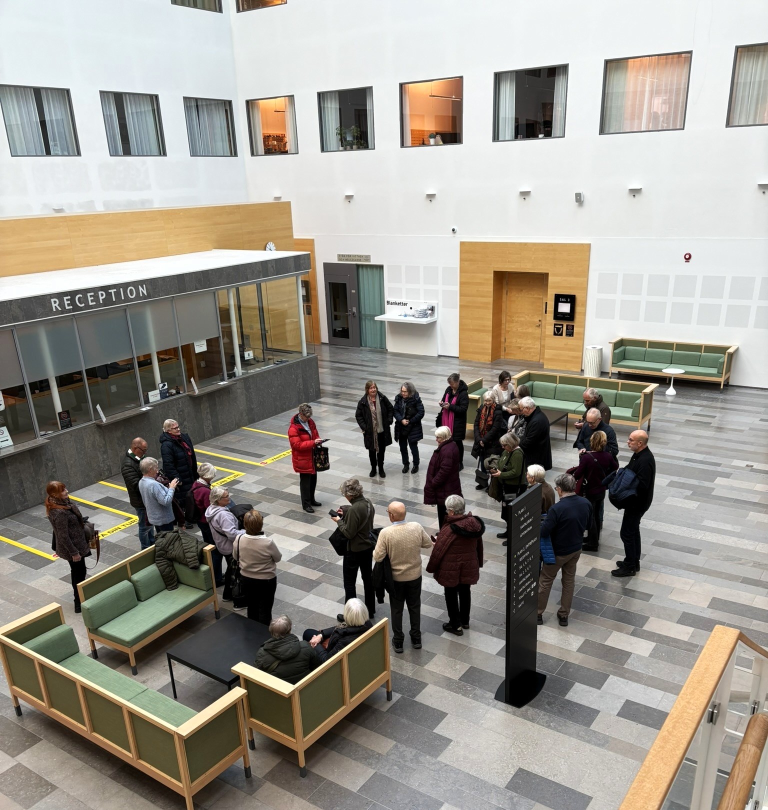 Vi var 40 stycken medlemmar som möttes i den stora ljusentrén på Navet – Mimer och flera företags kontorsbyggnad vid Björnövägen.